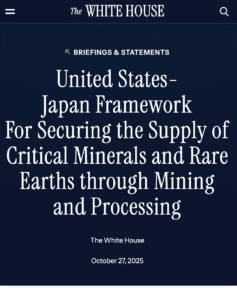 WHITEHOUSE: U.S.-Japan Critical Minerals Framework Reinforces Global Need for Allied Midstream Infrastructure Read More » October 28, 2025